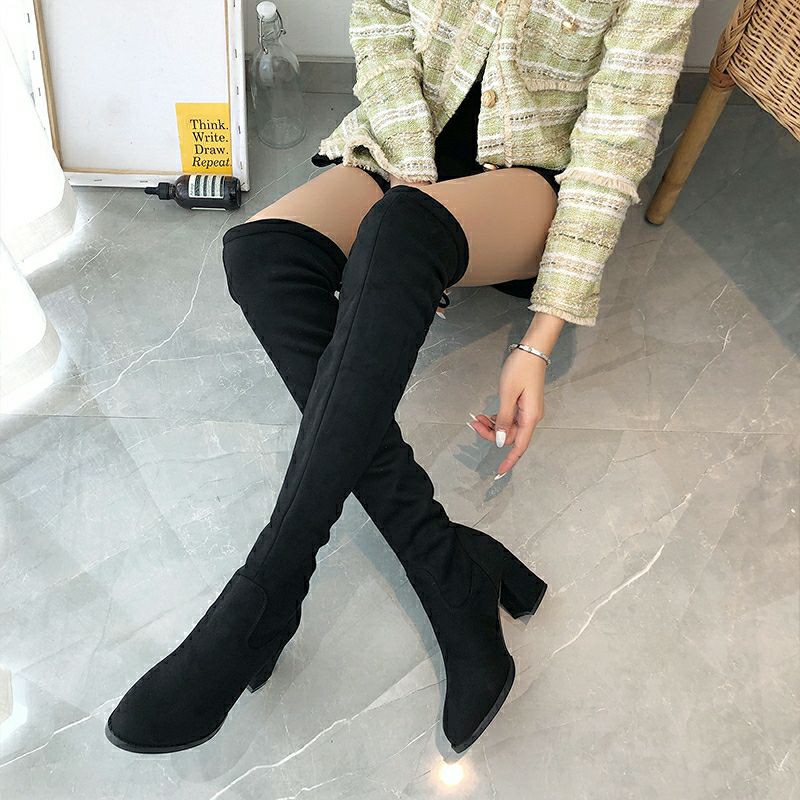 Bốt Đùi Đế Vuông Cao 7cm Chất Da Lộn free ship