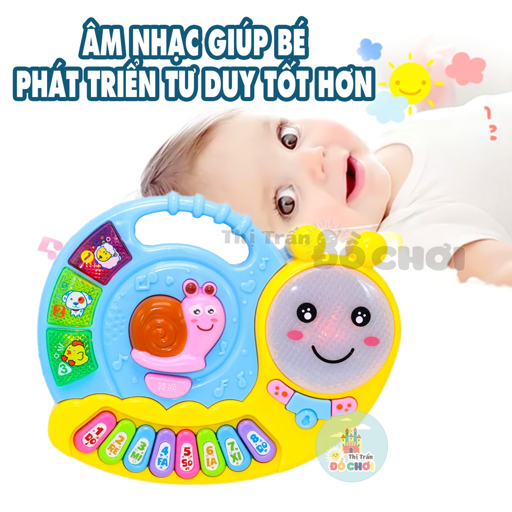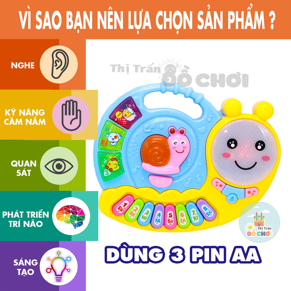 Đồ chơi cho bé - Đàn piano, organ cho bé trai hình chú ốc sên màu xanh dùng pin 3021- Thị trấn đồ chơi free ship