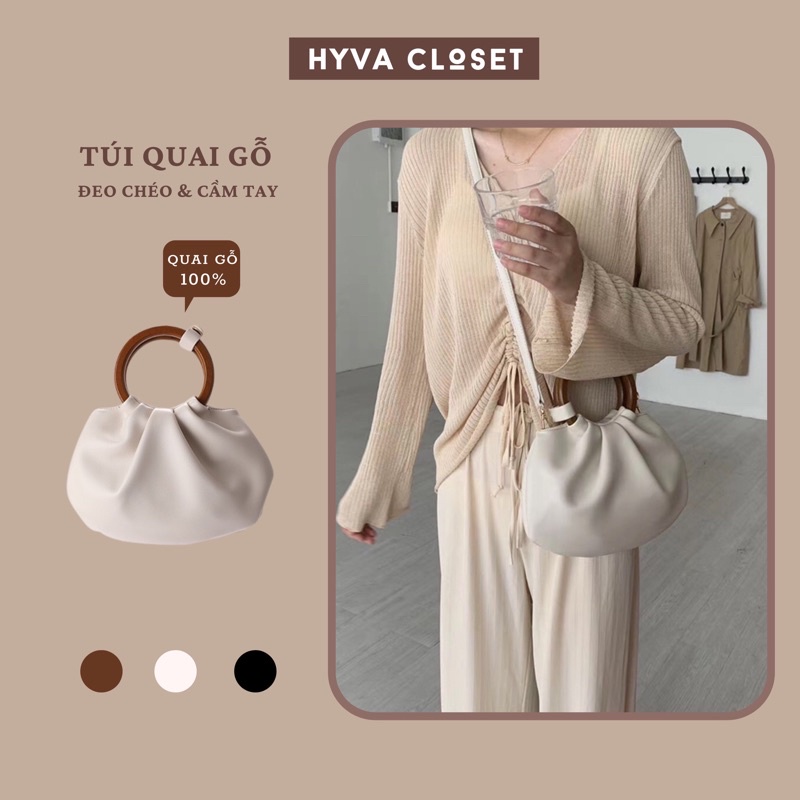Túi Đeo Chéo Nữ Quai Gỗ Tròn Da Mềm Quai Gỗ 100% Hàng Quảng Châu Cao Cấp SẴN free ship